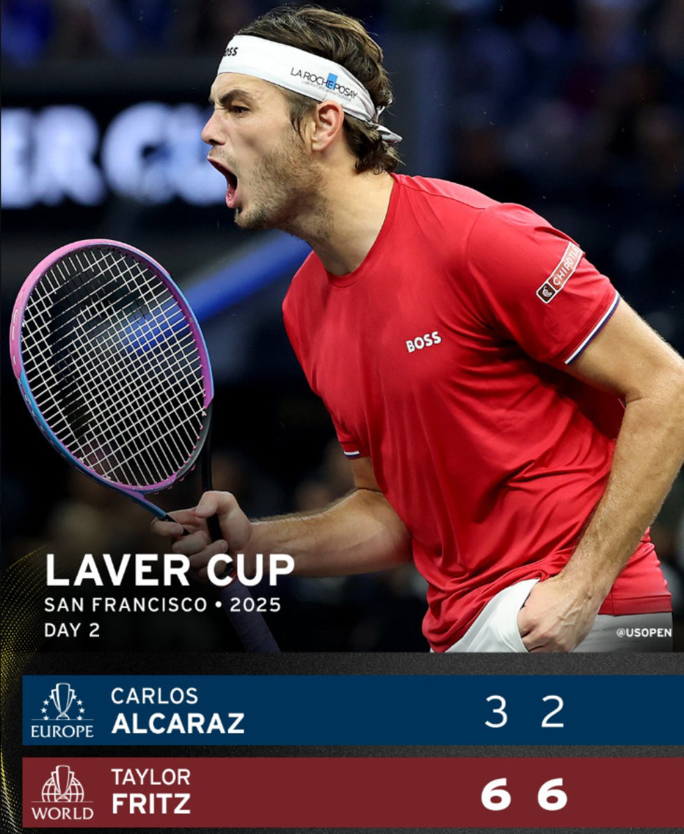 Taylor Fritz dio la gran sorpresa en la Laver Cup 2025 al derrotar de manera contundente al número uno del mundo, Carlos Alcaraz, con parciales de 6-3 y 6-2 en apenas 71 minutos de juego. El encuentro, disputado en San Francisco durante la segunda jornada del torneo, marcó la primera victoria de Fritz sobre el español en cuatro enfrentamientos previos y le permitió al equipo del Resto del Mundo tomar una ventaja clave frente al combinado de Europa en esta competición que enfrenta a las dos grandes potencias del tenis.