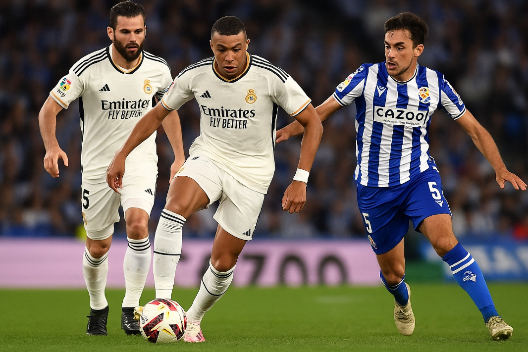 La Real Sociedad, empujada por su afición, logró descontar en el segundo tiempo gracias a un penal convertido por Oyarzabal tras una mano de Dani Carvajal dentro del área, lo que encendió la presión ofensiva del conjunto local.