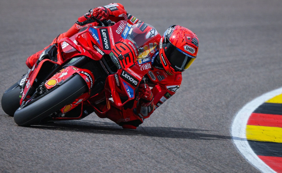 Después de la carrera al sprint del sábado, el líder del Campeonato del Mundo, Marc Márquez, también ganó el Gran Premio de Alemania al día siguiente. El piloto de Ducati triunfó en Sachsenring por delante de su hermano Alex (Gresini) y su compañero de equipo Pecco Bagnaia. Una locura: Un total de solo diez corredores llegaron a meta, Álex Rins fue el último de la parrilla en celebrar seis puntos. Marc Márquez también ganó el Gran Premio de Alemania en Sachsenring después del sprint.